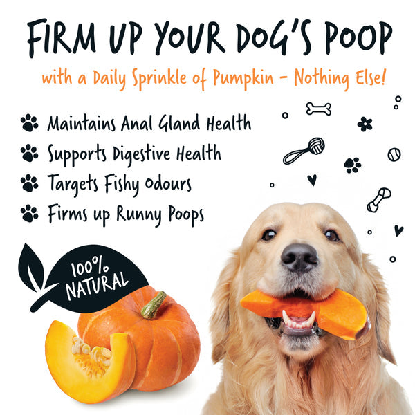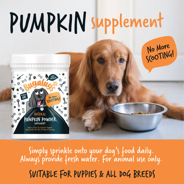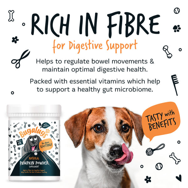 Made with 100% pure pumpkin powder, Bugalugs Pumpkin Powder is the ultimate natural superfood supplement for your dog’s digestive health. This premium powder is packed with fibre, acting as a natural stool firmer to help regulate daily bowel movements. By minimising the risk of loose stools, constipation, and uncomfortable anal gland issues, it supports optimal gut function and keeps your dog feeling their best every day.