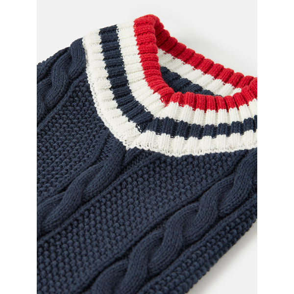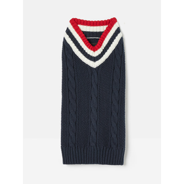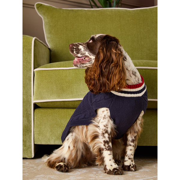 A cricket-inspired knit for your four-legged friend? Okay then. This cool, cable knit will be perfect to give your pooch a little preppy style. A great layer for the colder months of the year, this relaxed fit jumper is a must for dog walking days. Cable knit V-neck Machine washable at 30c Three sizes available.