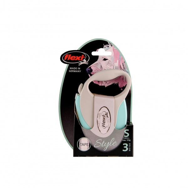 Flexi Style retractable tape lead grey/mint small 3m tape. Stylish Grey/ Mint colour. Small size for dogs up to 12kg