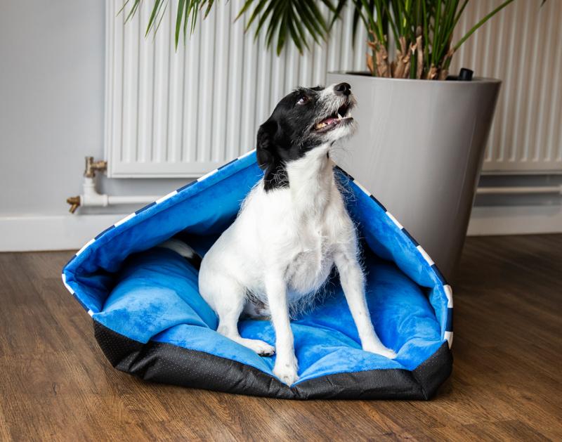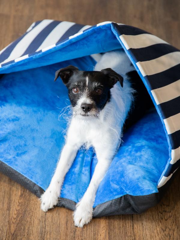 Inside, a soft, plush inner lining in vibrant blueberry brings a juicy pop of contrast your dog will love to burrow into. The built-in canopy creates a cosy hideout for pups who crave that tucked-away feeling, perfect for lounging, resting, or escaping the world for a while.