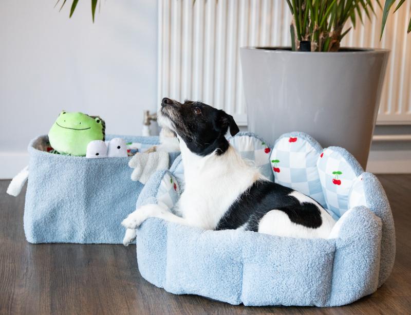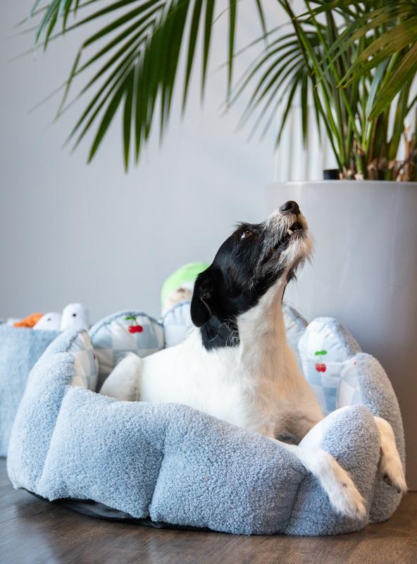 Add a touch of charming, Parisian-inspired style to your pup’s nap spot with our Dompanie Décor-Inspired Dog Bed. Designed for both comfort and flair, this bed features a soft blue towelling exterior that’s plush to the touch and easy on the eyes. Inside, your dog will love curling up on luxurious velvet printed with a playful blue and white checkerboard pattern, scattered with sweet red cherries.