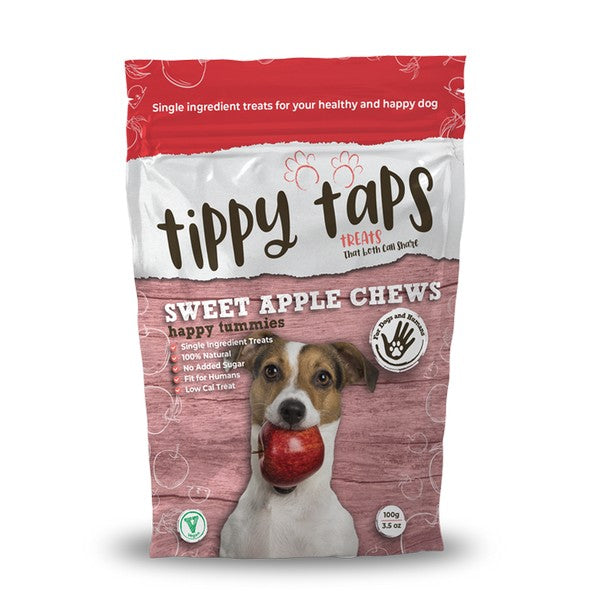 Tippy Taps Sweet Apple Chews are a low-fat, low protein treat packed with fibers and vitamins that will keep your dog healthy and happy. Tippy Taps Sweet Apple Chews are suited for dogs with special digestive needs and senior dogs. The high concentration levels of fibers (namely Pectin) naturally present in apples will help to regulate your pet’s digestive tract. They are also recommended for dogs with bad breath, complementing their dental hygiene.
