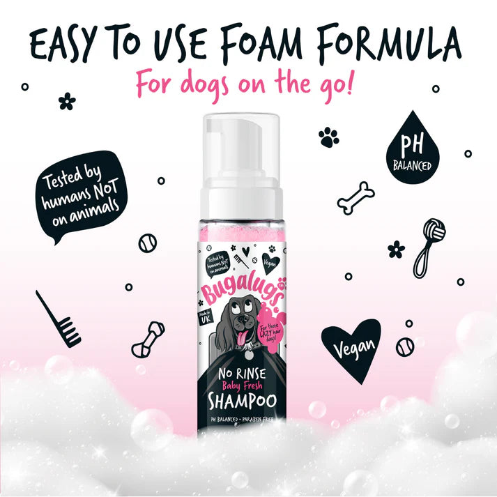 The Bugalugs No Rinse Baby Fresh Shampoo instantly cleans and refreshes your dog’s coat without the use of water. This product is perfect for pooches who are not a fan of traditional washing methods.