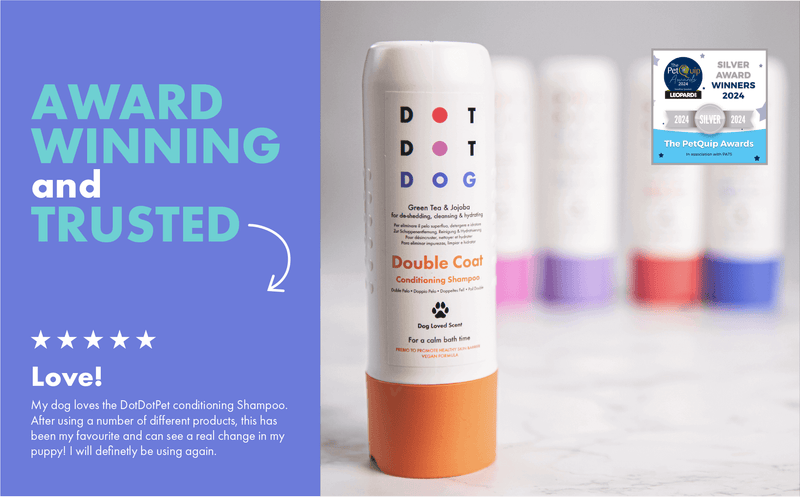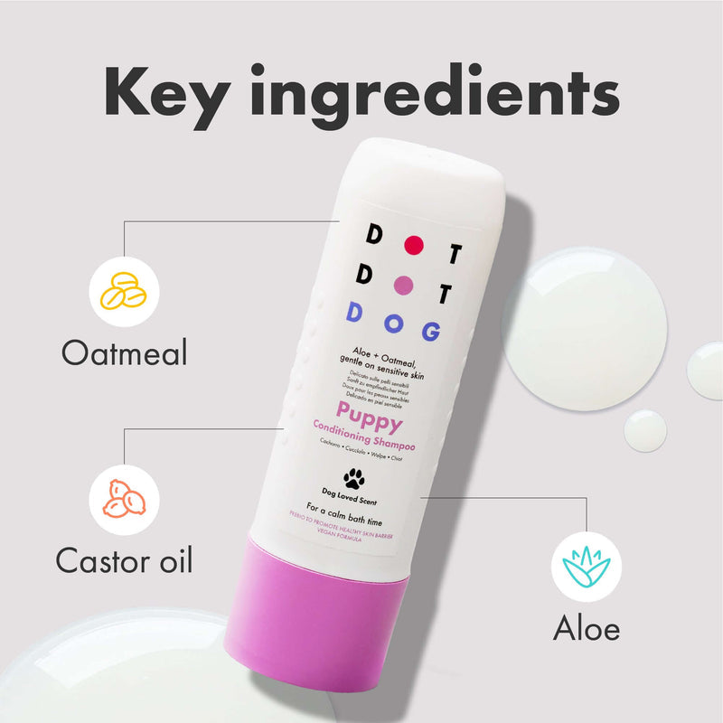 Give your puppy the best start with DotDotPet’s gentle oatmeal conditioning shampoo — a perfect way to keep their skin happy, their coat soft, and their nose content from their very first bath.