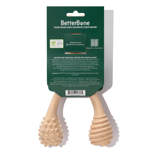 Introducing BetterBone MEDIUM — the perfect natural chew toy for everyday chewers! This chew is expertly crafted from all-natural, food-grade ingredients, ensuring a balance of durability and gentleness to help maintain oral health and dental hygiene.