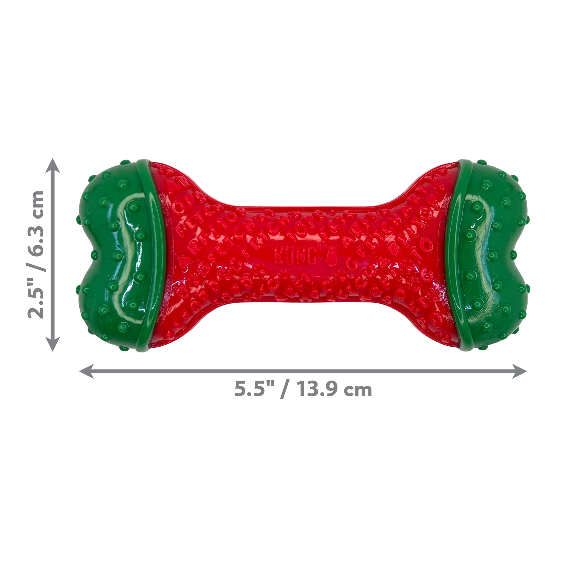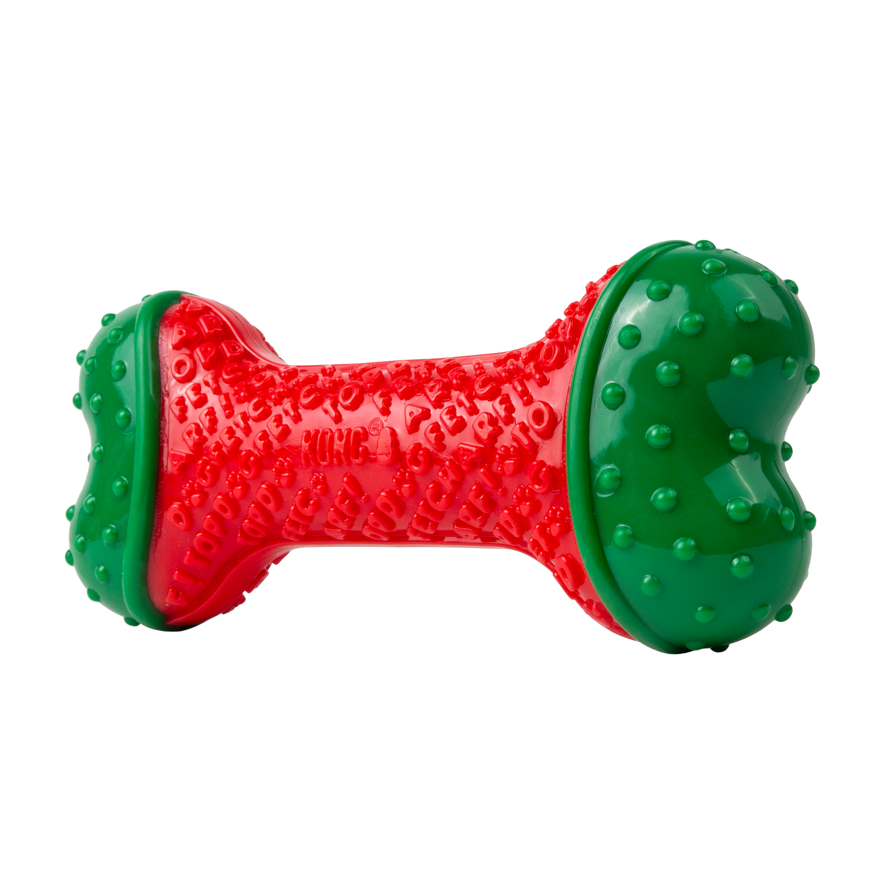 - Durable red and green chew toy built to last long after Santa leaves town