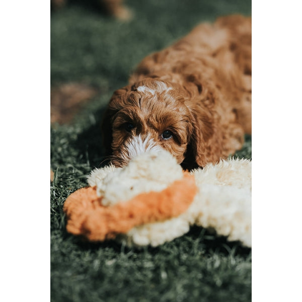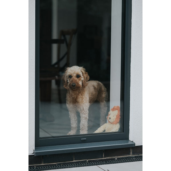 My Dog luxury plush toy - stuff tummy with something that carries scent to comfort dog while away or at work. Crinkle paper, 4.5cm Squeaker, Flat tummy with Velcro to close. Match the toy to your dogs personality & character. Lion characteristics - team player, courageous, loyal, leader, brave.