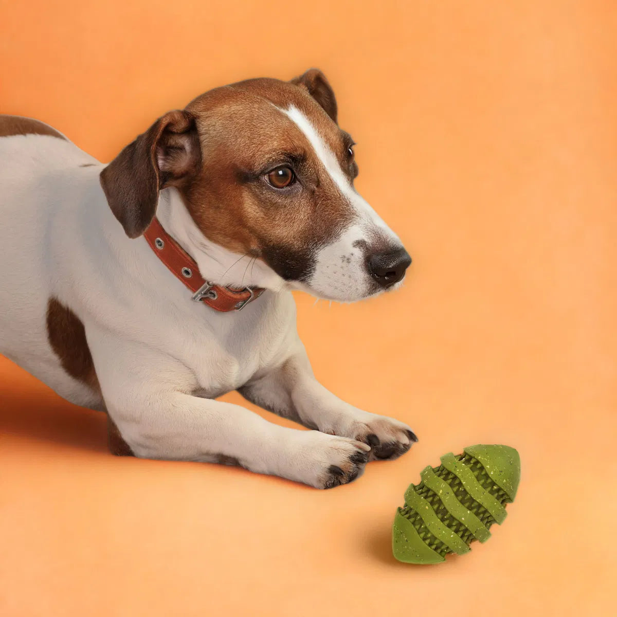Built to Play. Made to Last. Its football-inspired design is perfect for medium-sized dogs who love to run, chase, and fetch. The bold green colour enhances visibility during active outdoor play, while the textured shape offers an easy grip and an unpredictable bounce that keeps dogs engaged.