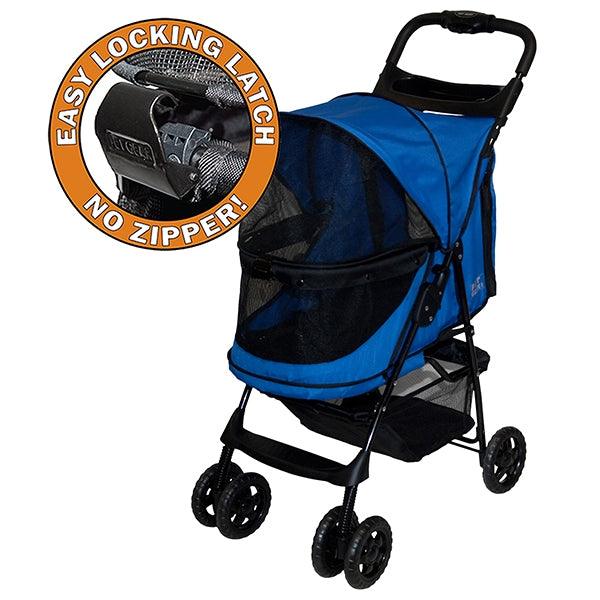 Pet Gear has really raised the bar with its new Happy Trails No-Zip stroller. No zippers mean no hassle when trying to open and close the stroller. The new No-Zip technology means that you can easily gain access to the pet without difficult zippers! Also features an elevated paw rest. Stroller height to handle 100cm.