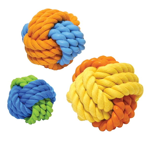 Tough Toys 3.5" Rubber & Rope Ball Asstd