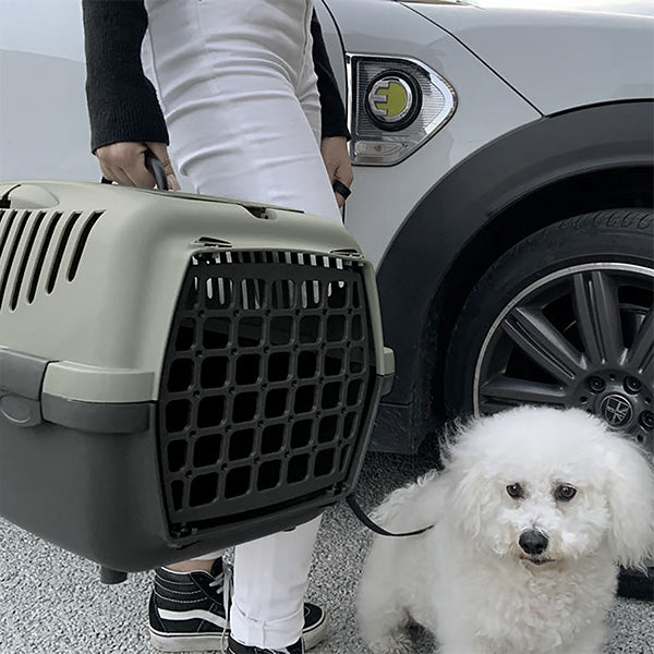 It has side slits to guarantee a correct inside aeration, a plastic door that can be closed from the outside with clips, built-in seat belt slots and an ergonomic handle. Available in different colours. It is safe, easy to assemble and clean, and perfect to travel with your pet.