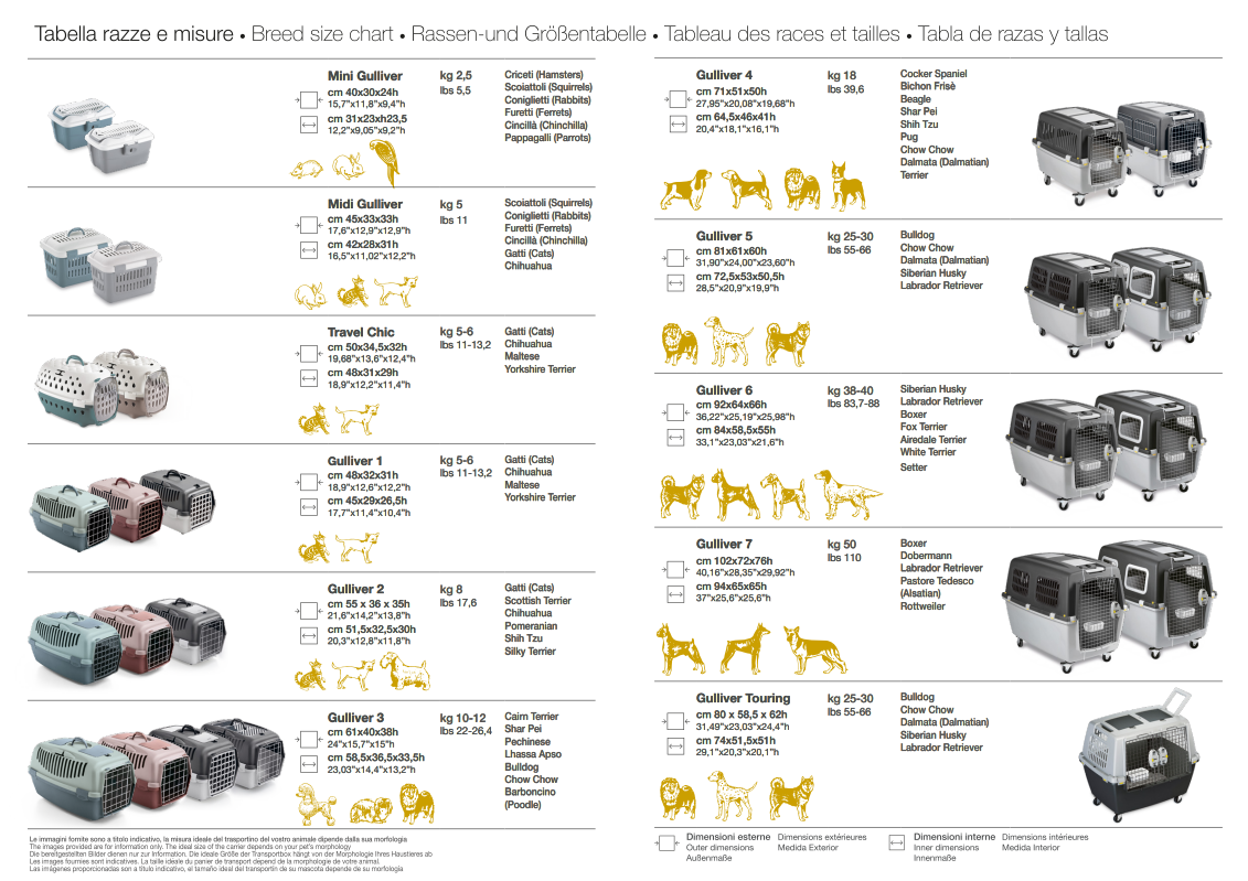 Gulliver Size 3 is a practical and versatile carrier suitable for small sized dogs up to 12kg such as Cairn Terrier, Shar Pei, Pechinese, Lhassa Apso, Bulldog, Chow Chow, Barboncino,(Poodle)