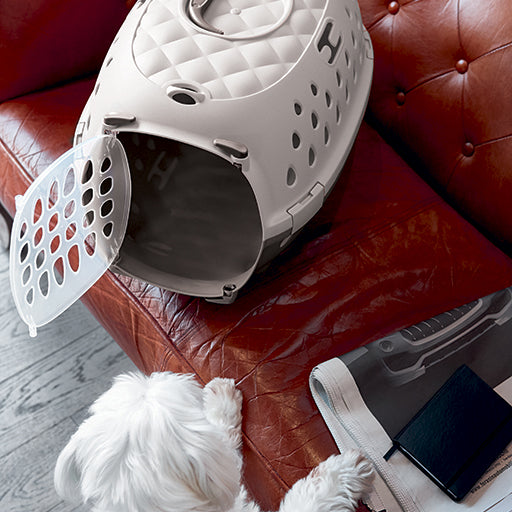 With the new Travel Chic pet carrier and its unique matelassé texture, carrying our cat and dog with us is now enjoyable, safe and elegant. The anti-slip floor, the seat belts secure system and the better aeration made possible by the drop shaped openings, make it perfect to travel with your four-legged friends.