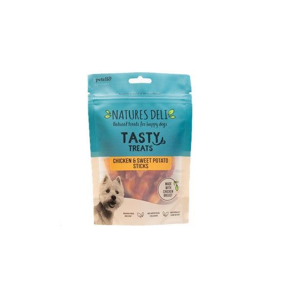Natures Deli Sweet Potato And Chicken 100g. A Big Hello from Petello! We make natural treats for happy dogs. They're healthily balanced, naturally nutritious and delicious, which is why we called them Natures Deli.Recommended For Dogs over 2 months.