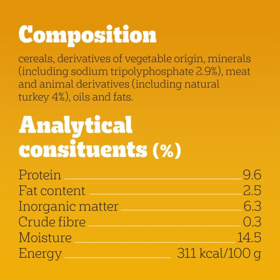 Mouthwatering taste, with 100% natural turkey with natural ingredients*Reduces tartar build-up by up to 85%Chewy, porous texture for a deep clean. Supports gum health