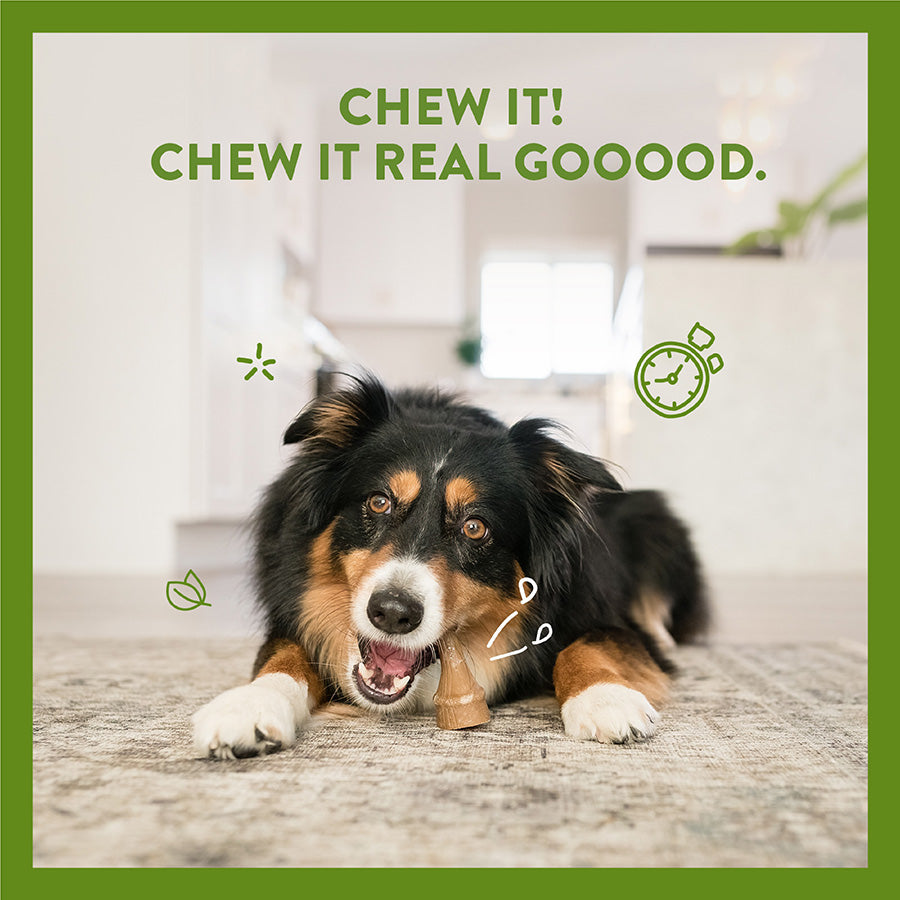 The 100% vegetarian treats are flavoured with natural chamomile extract, and their unique antler shape offers your dog a healthy challenge and keeps them chewing longer!