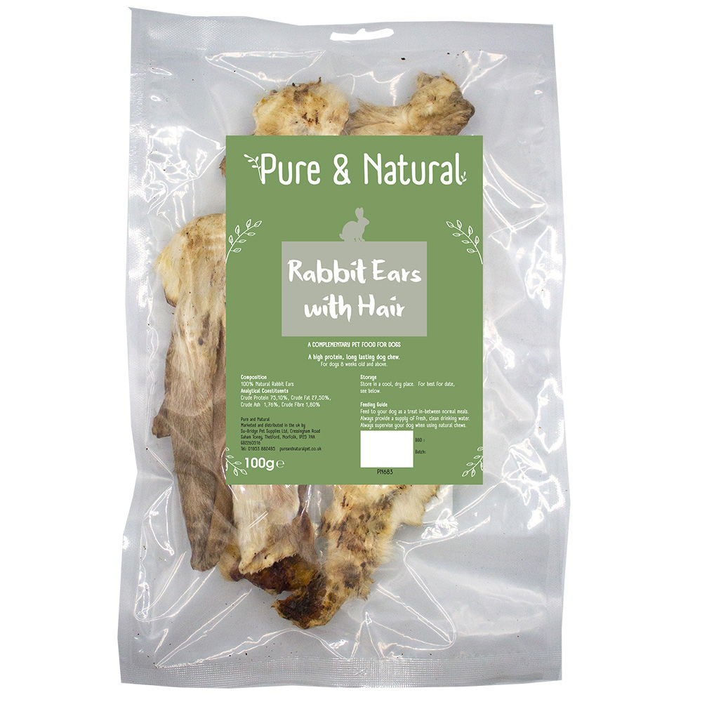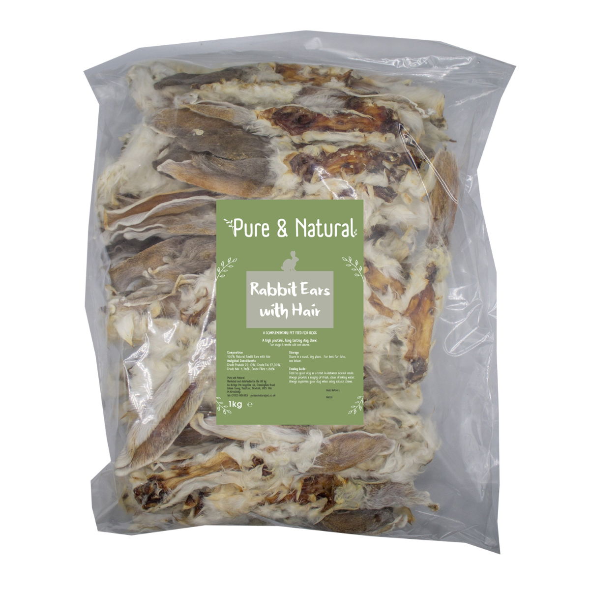 Pure & Natural Rabbit Ears with Hair, the perfect treat for your furry friend! Made from 100% pure and natural rabbit ears with hair, these air-dried treats are a delicious and nutritious snack for dogs of all sizes. Here are three reasons why you should choose Pure & Natural Rabbit Ear Treats: