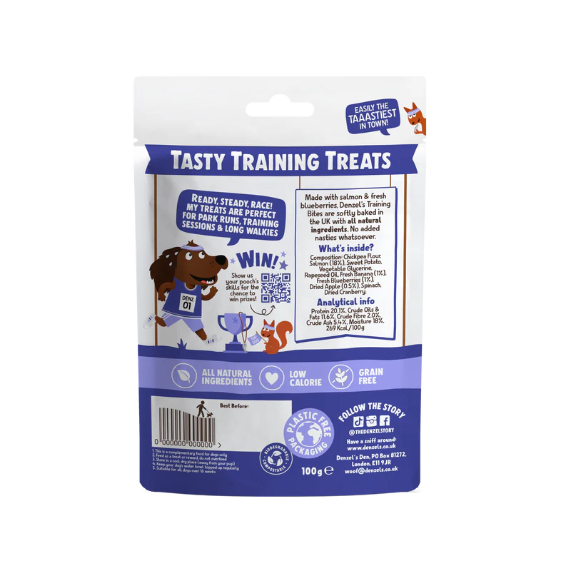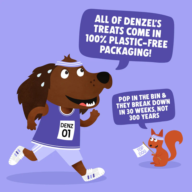 Denzel’s Training Bites are all-natural, low-calorie & grain-free, with no added nasties whatsoever. They're gently baked in the UK with plastic-free packaging as well as biodegradable & at-home compostable, for happier dogs & a healthier planet.