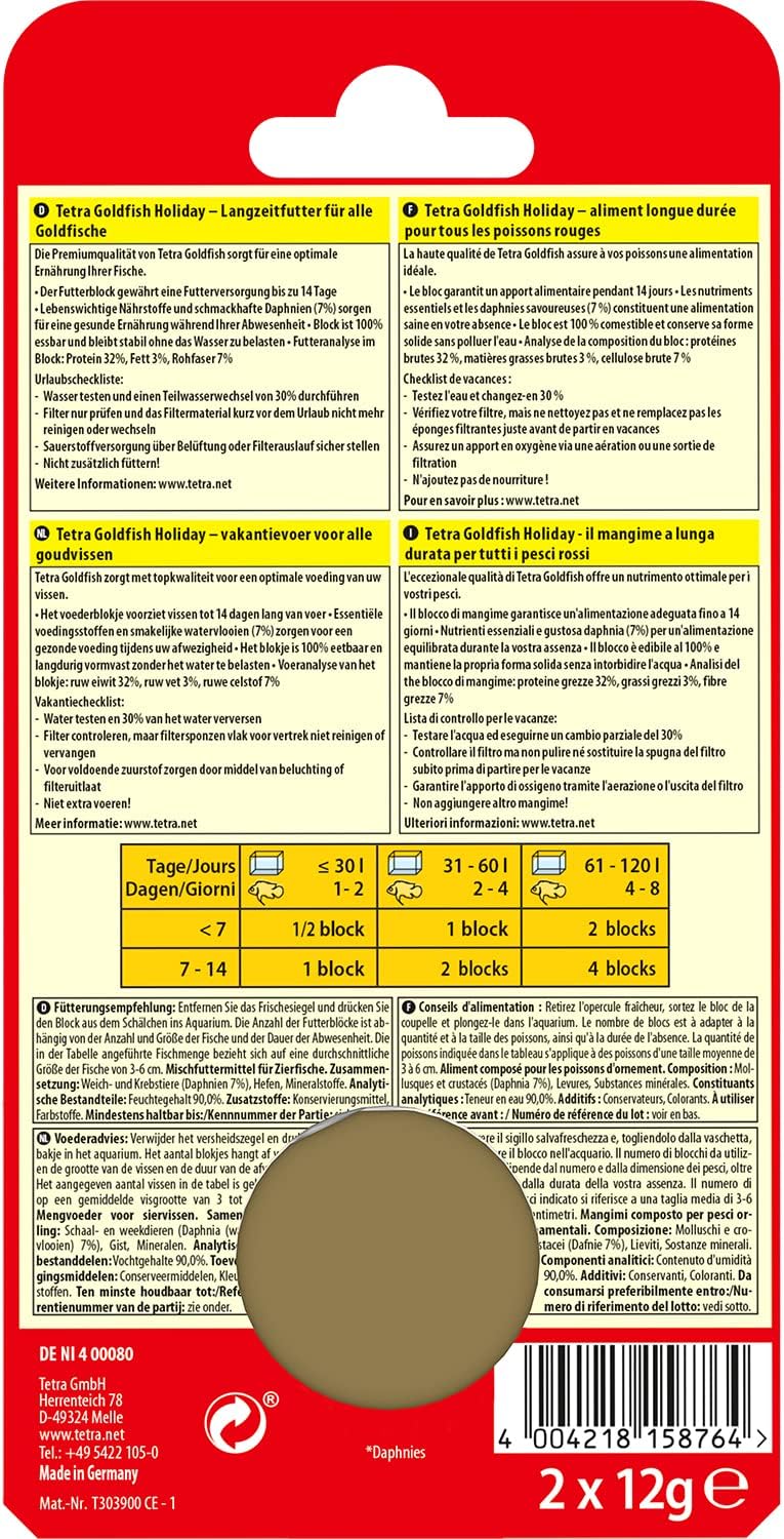 - 100% edible holiday fish food for goldfish to provide you with the assurance of your pets well-being when out on a trip