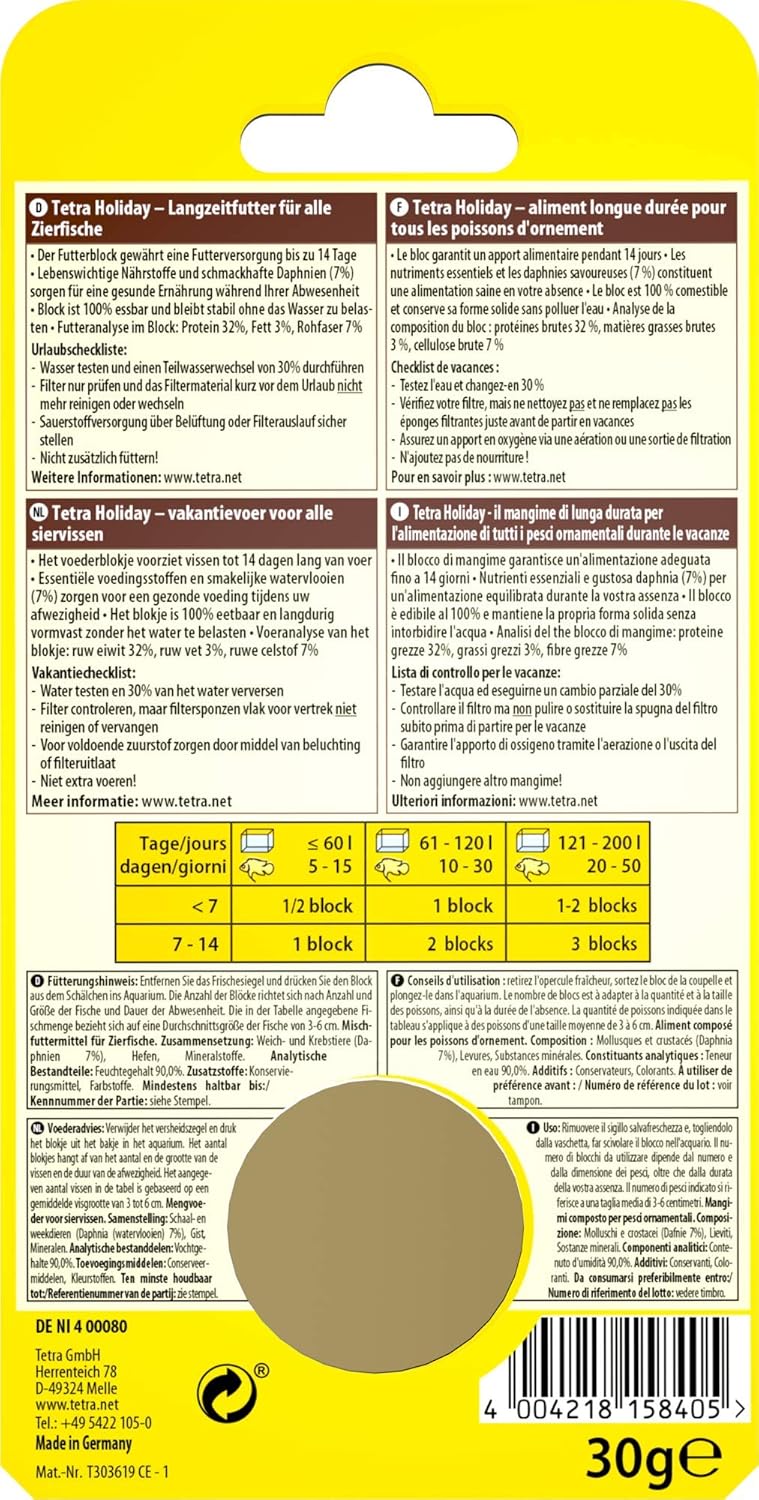 - Holiday food for tropical fish to provide healthy nutrition up to 14 days