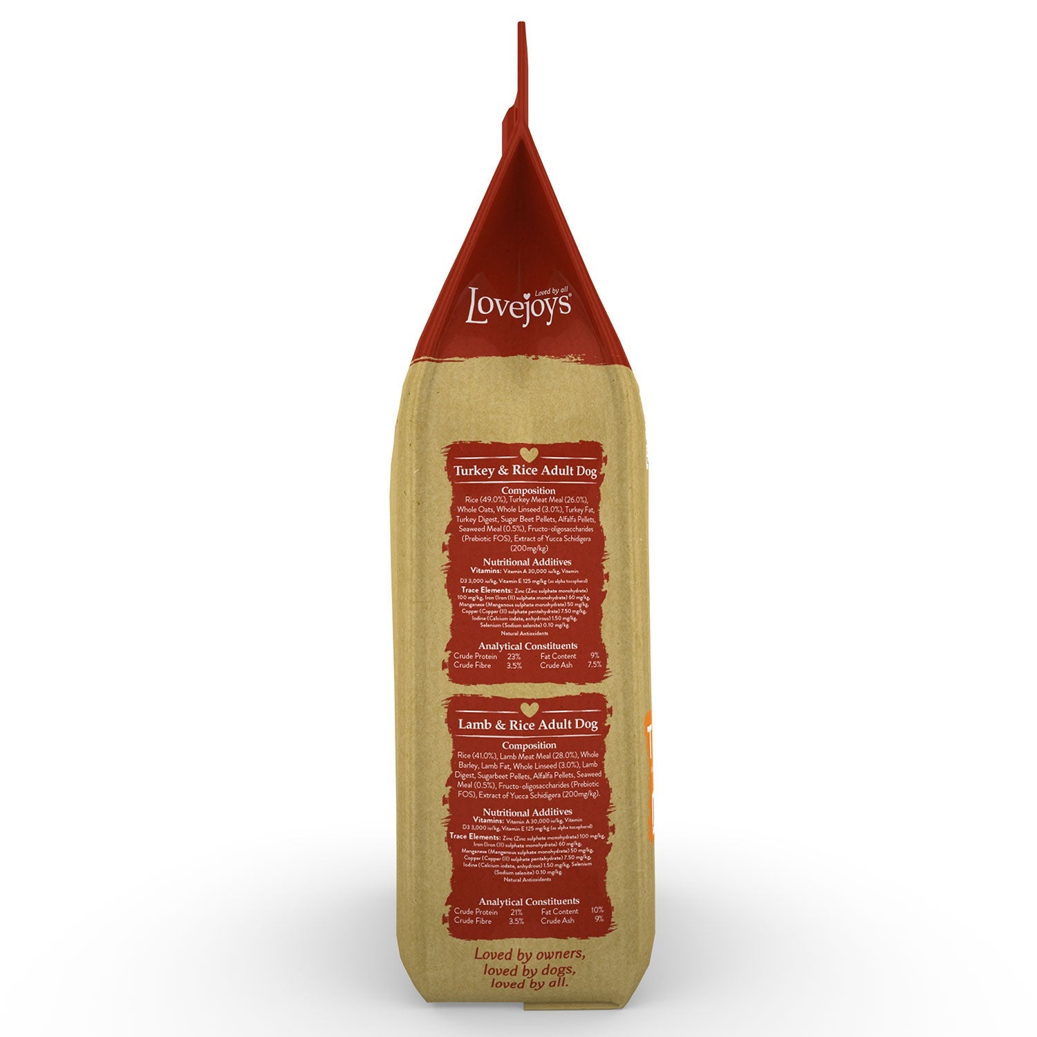Lovejoys dog food is hypoallergenic, using only a single source of protein and specially formulated to exclude many known allergens, such as wheat, wheat gluten, dairy, pork, beef and soya. Lovejoys delicious, crunchy kibbles are designed to help remove plaque and tartar from your dogs teeth, reducing the cause of unpleasant breath in the process.Healthy, happy dogs have glossy coats and healthy skin. Our recipes contain Omega 6 & 3 fatty acids to ensure they always look and feel absolutely tip top.Lovejoys food is preserved using Vitamin E and Rosemary, which are natural preservatives.No added artificial colours, flavours or preservatives in any of our foods.All Lovejoys food includes Seaweed Oil (from a sustainable source) because it contains DHA (Docosahexenoic Acid).