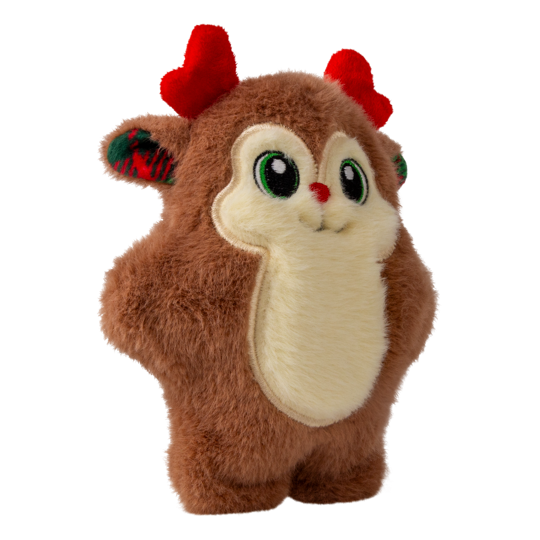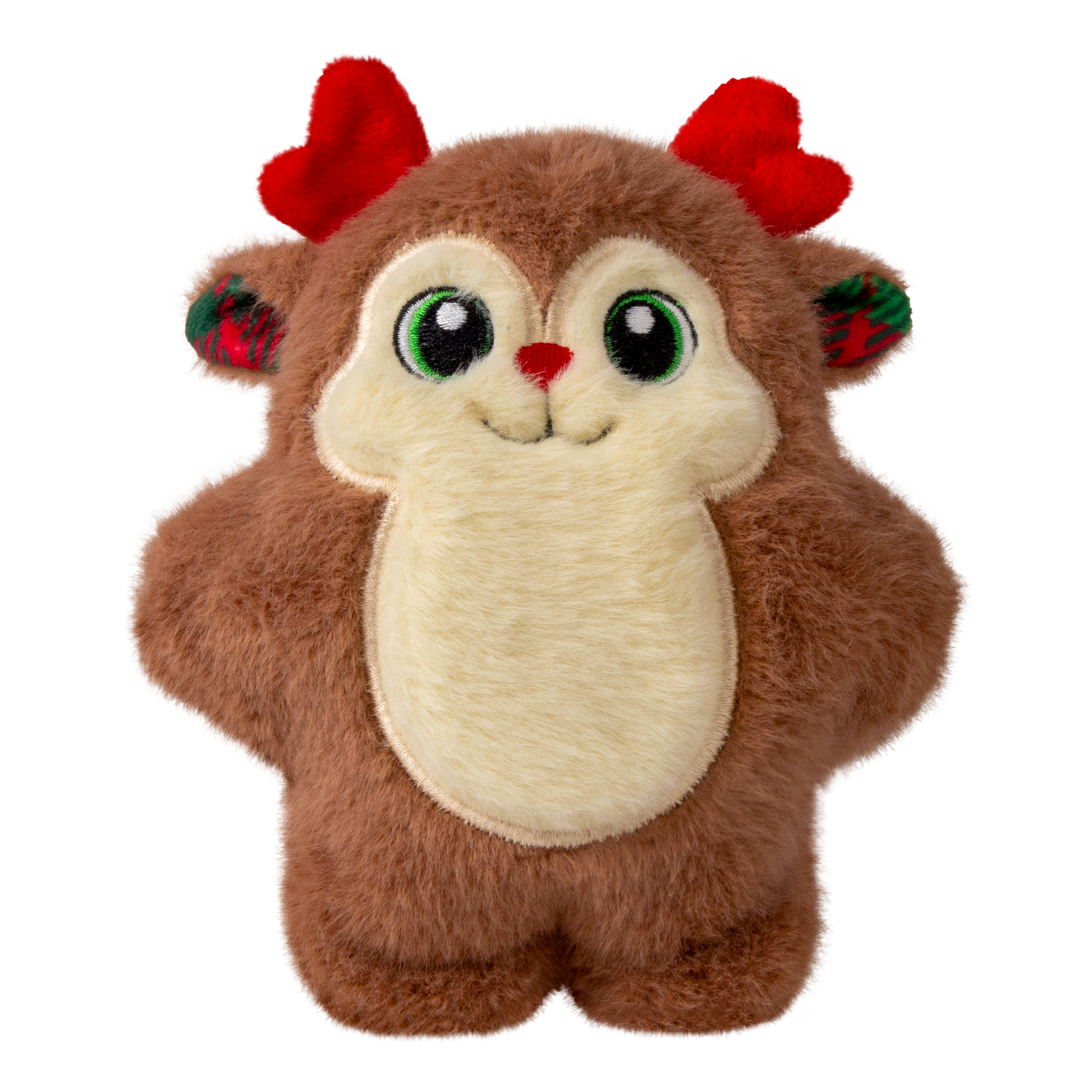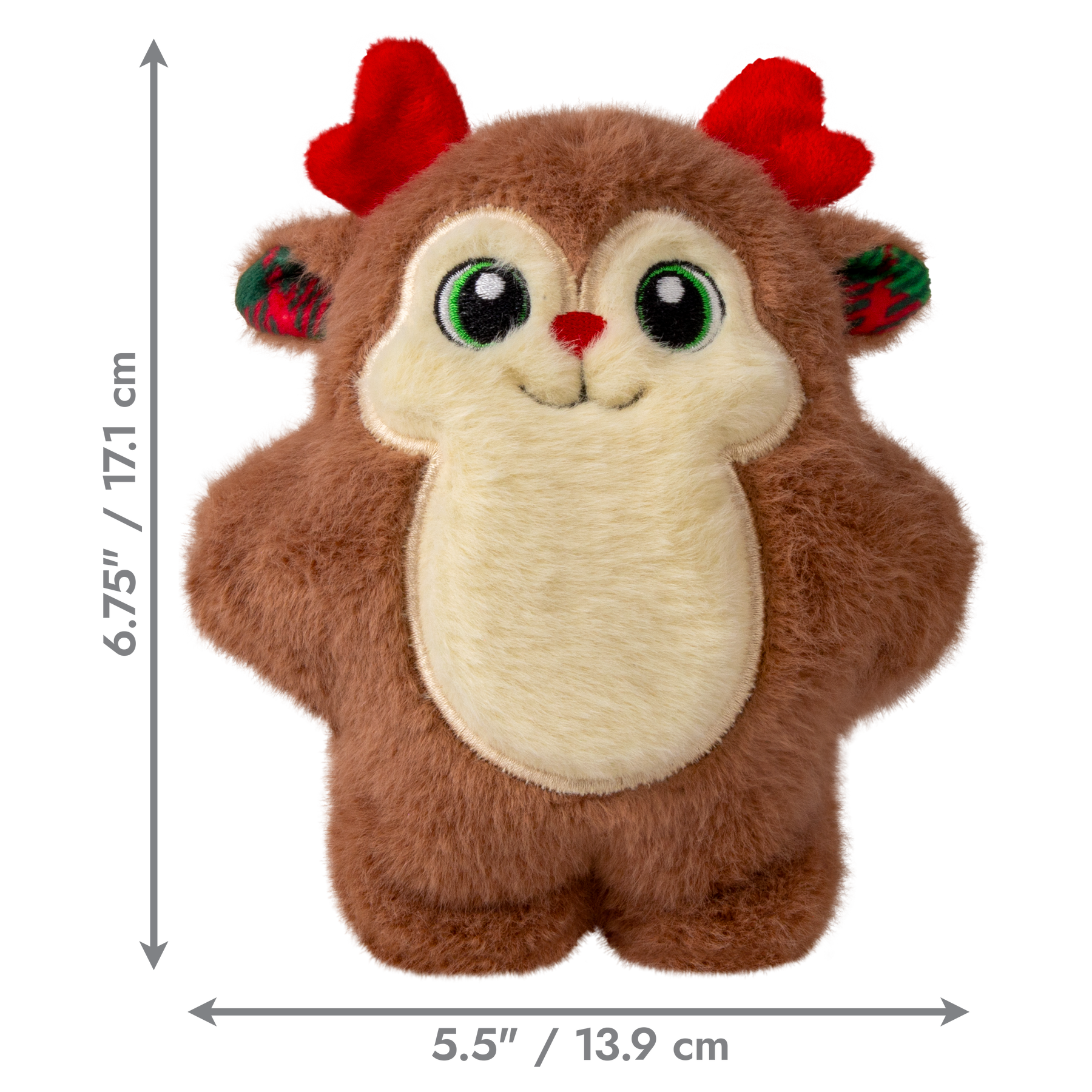 KONG Holiday Snuzzles Reindeer is plump-full of fun! Filled with a full-body squeaker that gives a long, loud call and a super-plush exterior that is perfect for holiday snuggles. The dense mouthfeel extends engagement by rewarding appropriate chewing with every bite. Ideal for indoor fun when the weather outside is frightful, the flat shape is ideal for dogs of all different sizes.