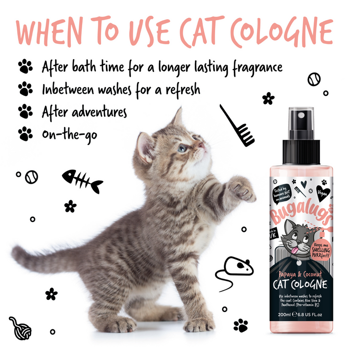 Swiftly refresh in between washes with the Bugalugs Papaya & Coconut Cat Cologne!