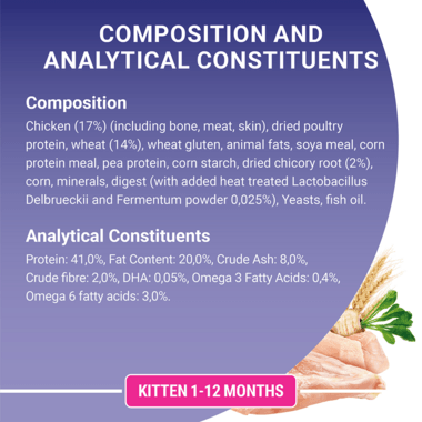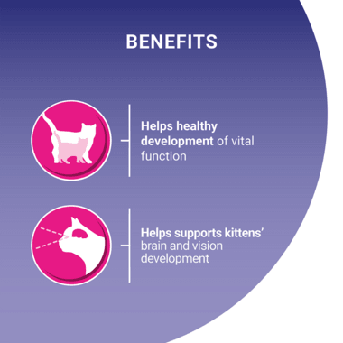 Helps support kittens’ brain and vision development thanks to DHA, a functional nutrient also found in mother’s milk