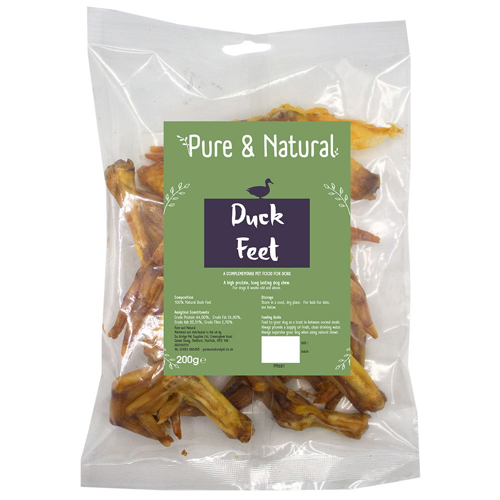 Pure & Natural Duck Feet, the perfect treat for your furry friend! Made from 100% pure and natural duck feet, these air-dried treats are a delicious and nutritious snack for dogs of all sizes.