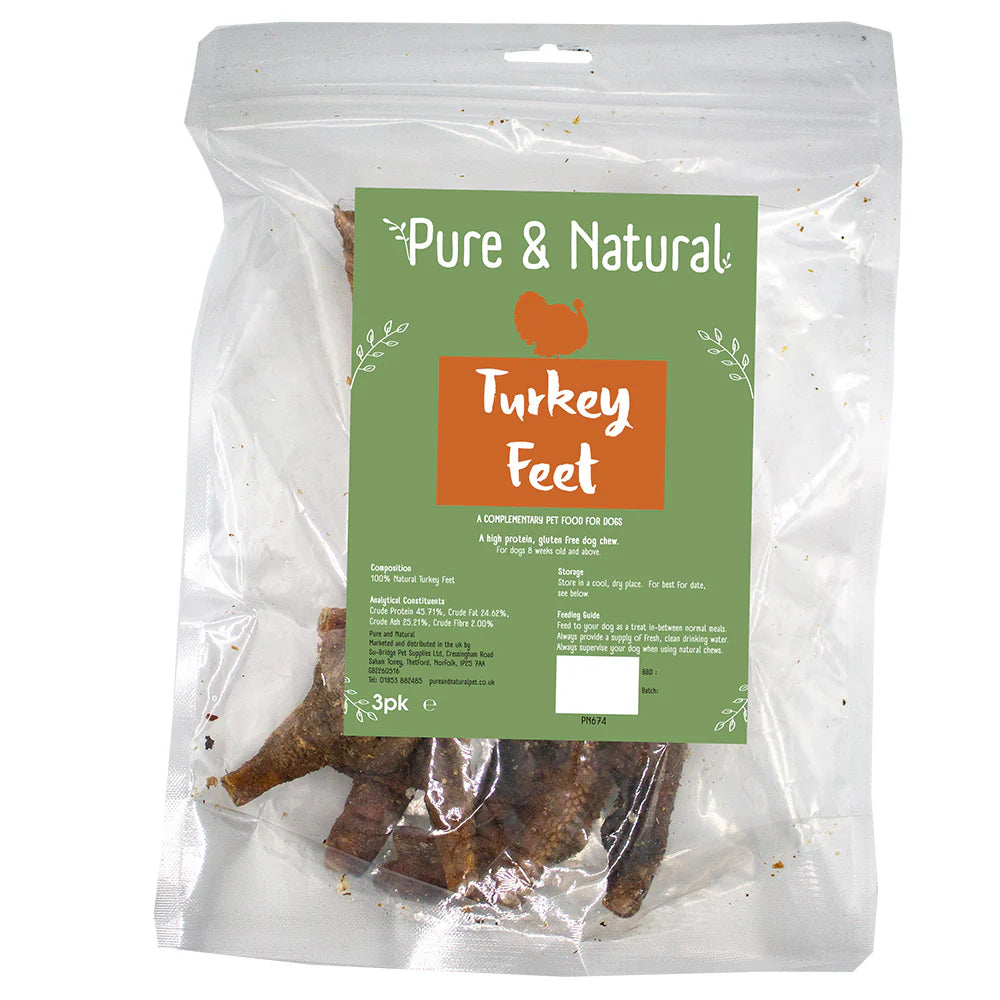 Pure & Natural Turkey Feet, the perfect treat for your furry friend! Made from 100% pure and natural turkey feet, these air-dried treats are a delicious and nutritious snack for dogs of all sizes. Here are three reasons why you should choose Pure & Natural Turkey Foot Treats: