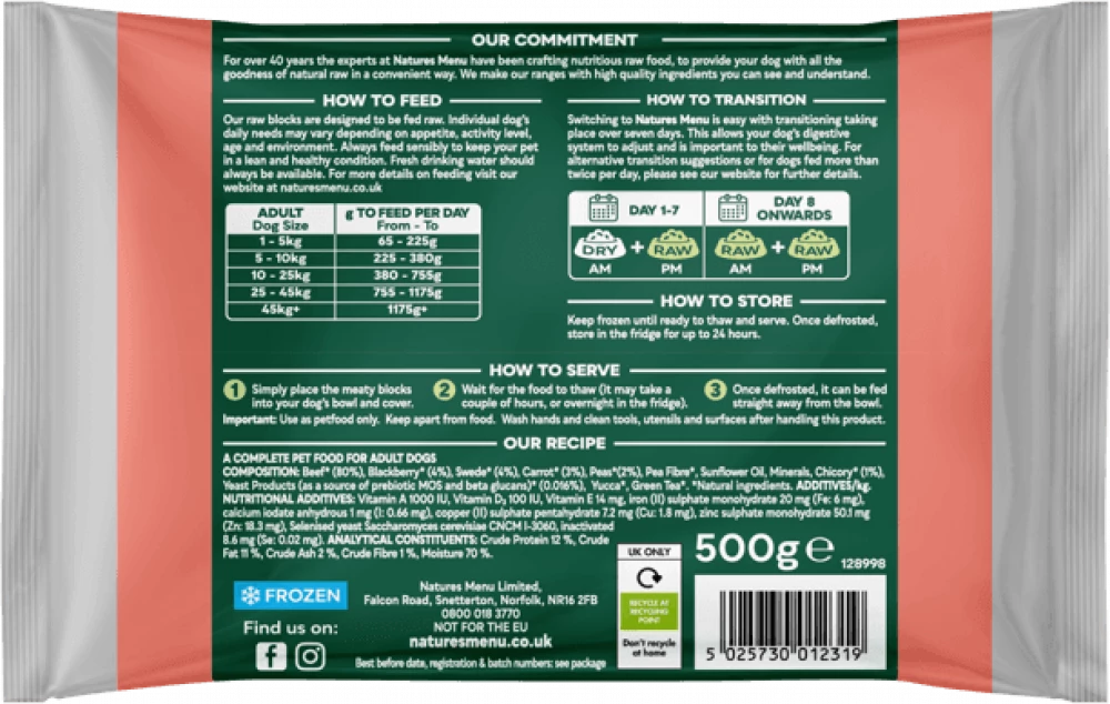 Natures Menu Complete & Balanced Raw Beef For Adult Dogs 500g