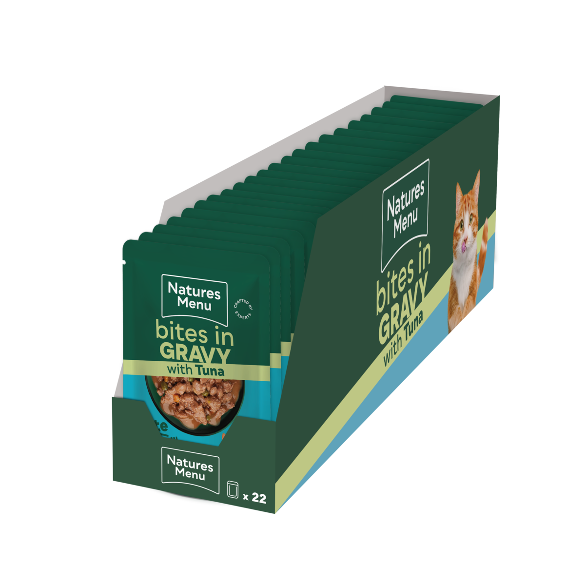 Your cat will tuck into every tasty morsel of our tender bites in a rich, savoury gravy. We’ve carefully crafted our irresistible Bites in Gravy with Tuna recipe so it’s purr-fectly delicious. Made using natural ingredients to ensure your cat has a complete and balanced meal that lives up to their exact standards!