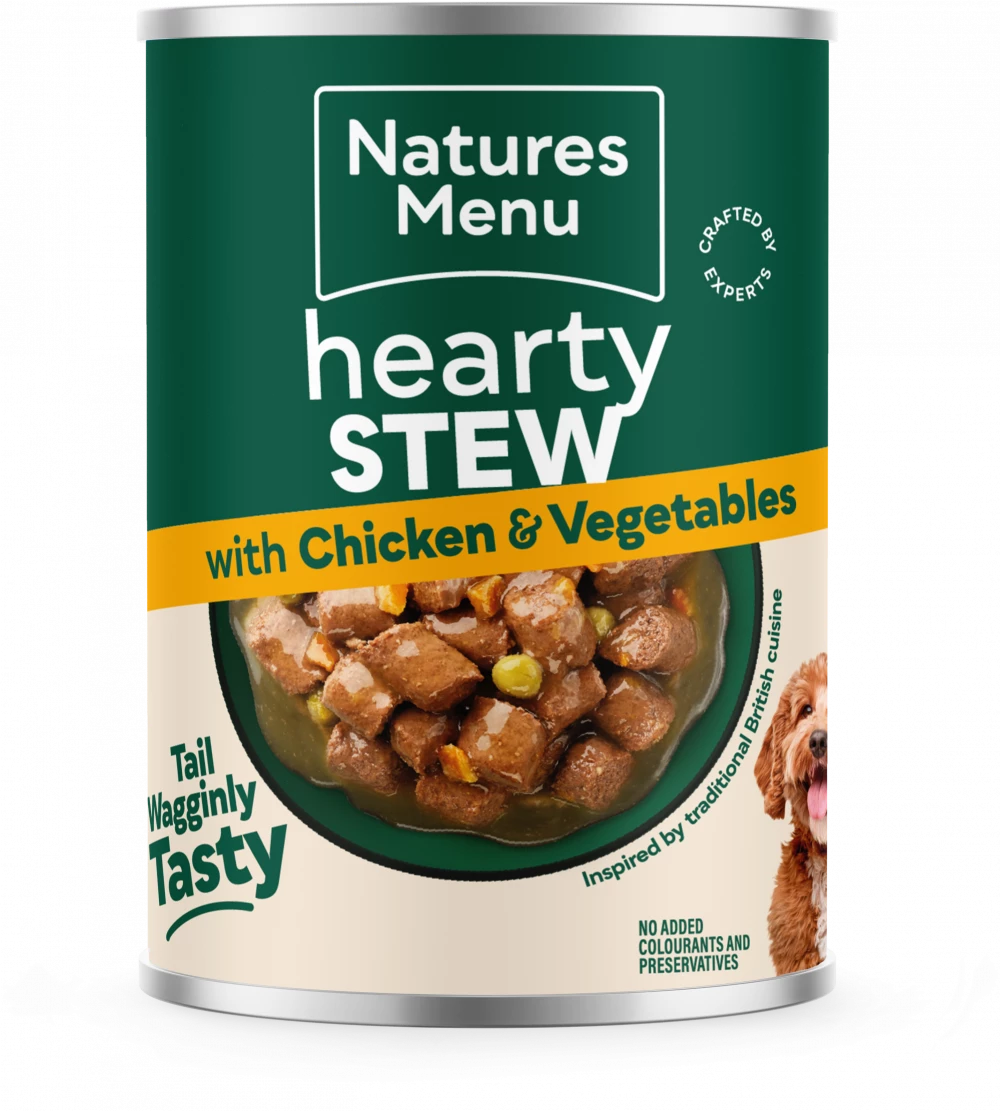 It’s tail-waggingly tasty! Our Hearty Stew with chicken and vegetables is inspired by traditional British cuisine, for a mouth-watering meal your dog will adore. Made with no added colours or preservatives.