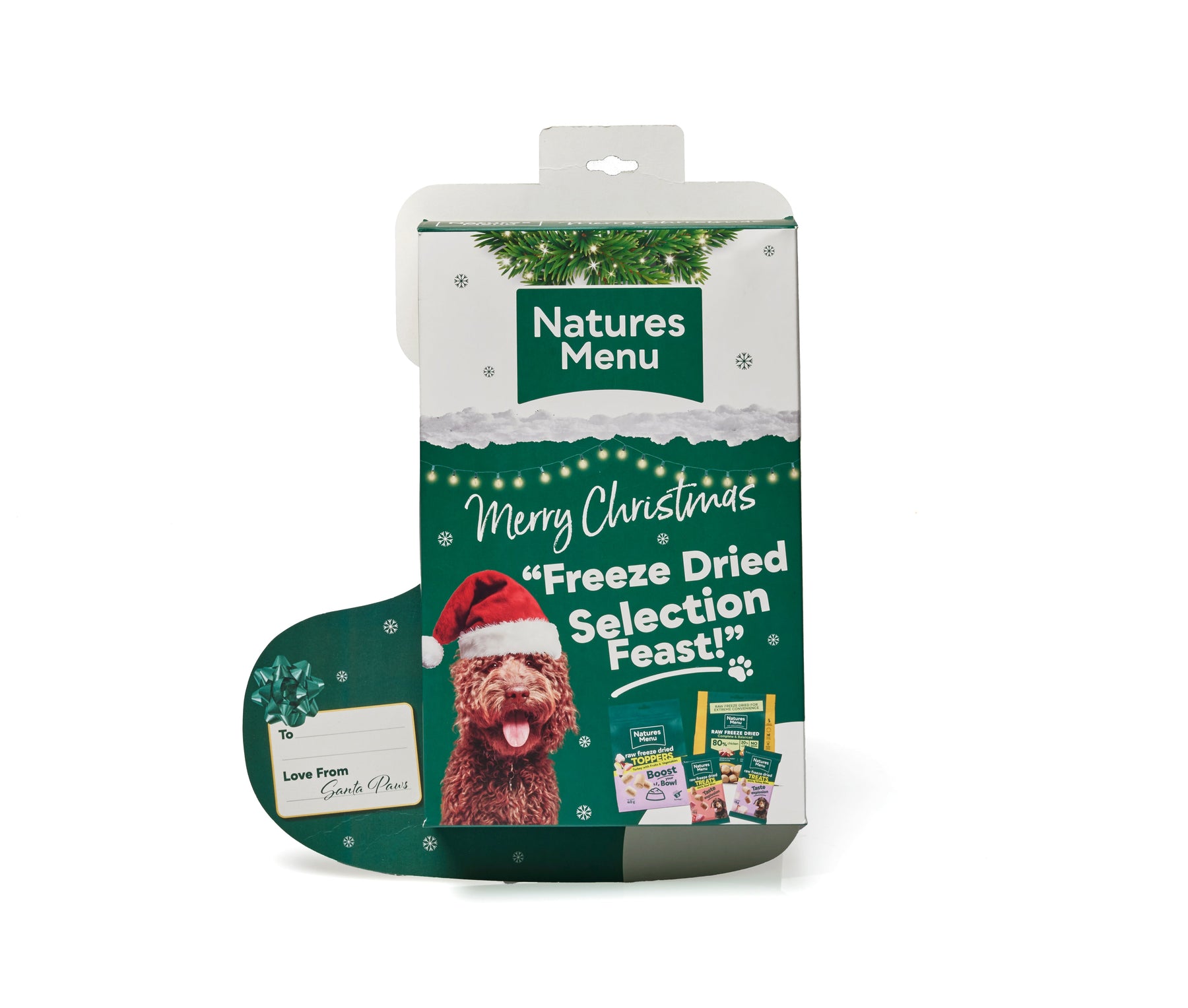 Christmas Stocking Make the holidays extra special! Drive excitement and tail-wagging joy with our Christmas Stocking packed with irresistible Freeze Dried delights. Eye-catching and ready to gift, the stocking adds a seasonal sparkle to your shelves while giving pet parents a fun way to spoil their dogs. Convenient, nutritious, and tail-waggingly tasty, it’s the ideal under-the-tree surprise that will keep pups happy all Christmas long.