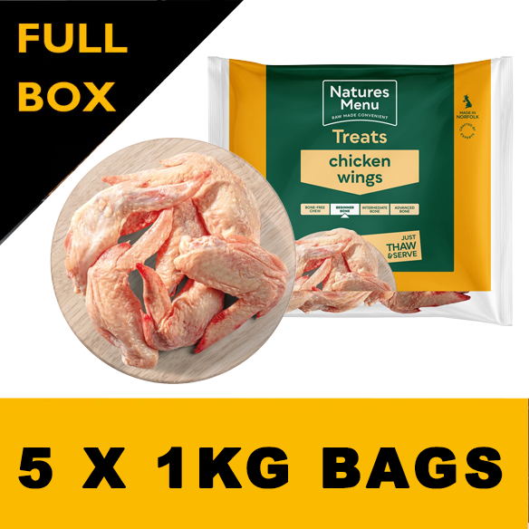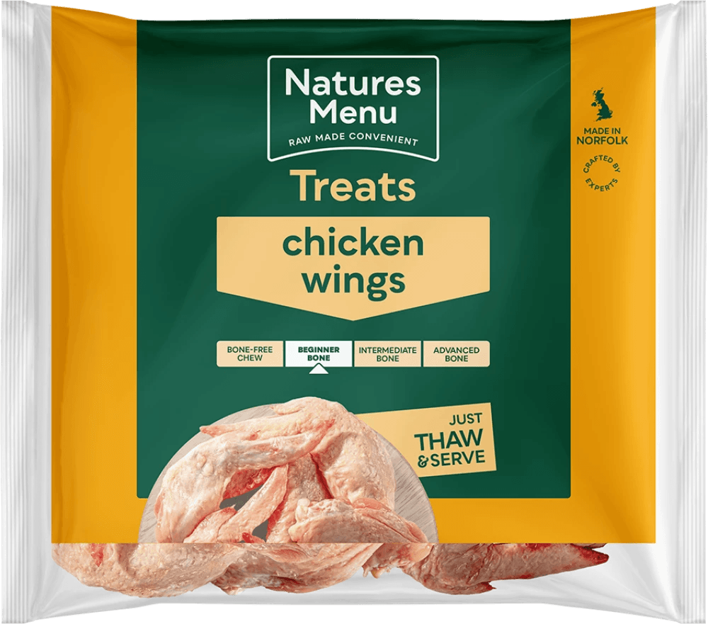 Soft and chewy, chicken wings make a perfect beginner bone. Our responsibly sourced Chicken Wings are a source of healthy lean protein with a light crunch. Suitable for dogs fed a raw diet over 10 weeks of age. Pack Size 1kg.