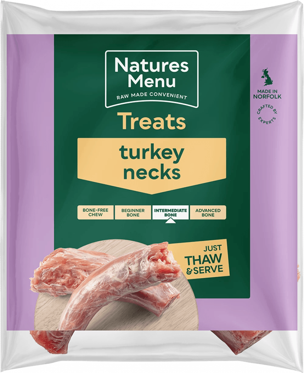 Satisfyingly chewy, firm and succulent, Turkey Necks make delicious crunchy treats or can be included as part of a home prepared raw meal. Suitable for dogs established on a raw diet over 10 weeks of age. Pack size 2 x Turkey Necks.