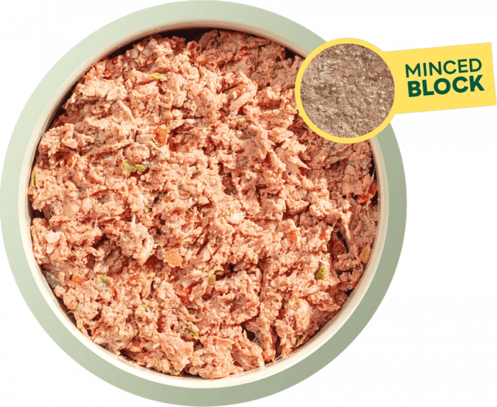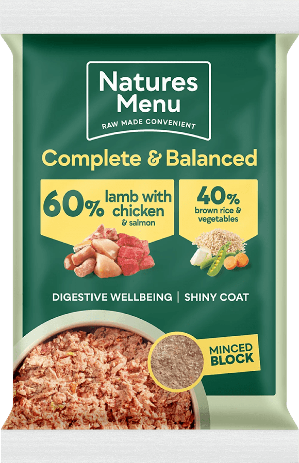 Our raw lamb dog food blocks with chicken & salmon are freshly frozen, so you can give your dog a delicious, mess-free, complete and balanced meal. Our lamb blocks for dogs provide a complete and balanced meal for all adult dogs with an irresistable taste.