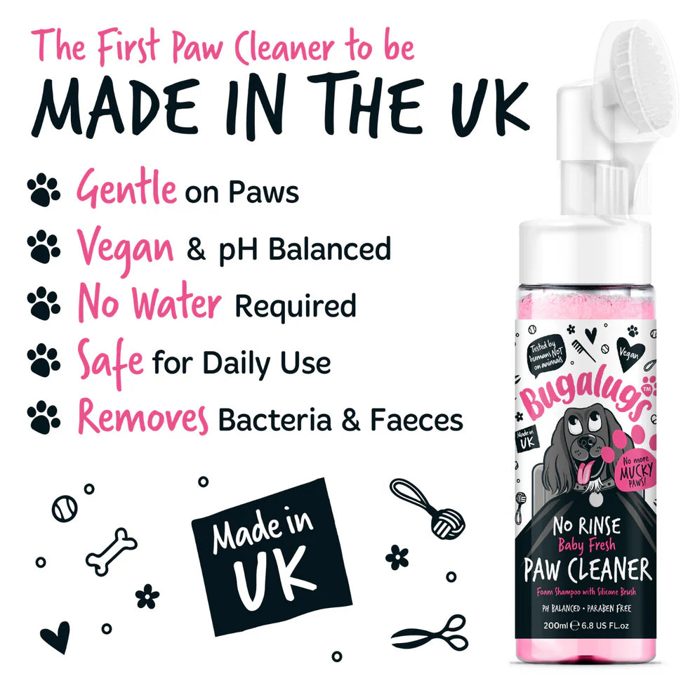 Bugalugs No Rinse Baby Fresh Paw Cleaner Foam Shampoo with Silicone Brush