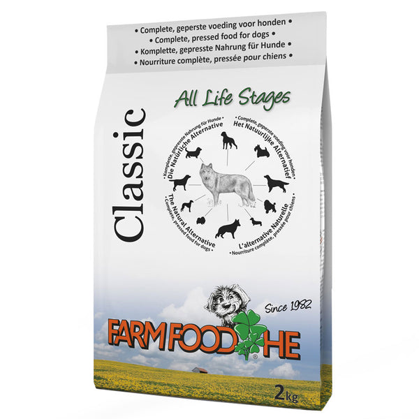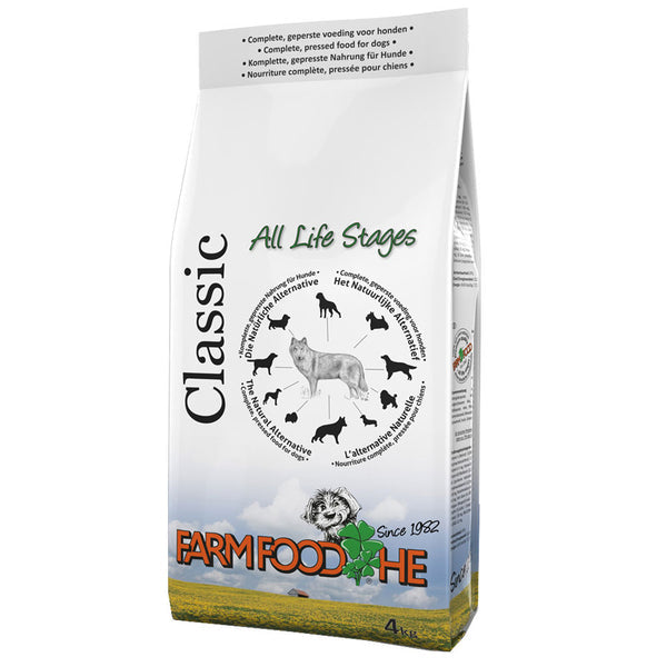 Farm Food HE is a high quality pet food that is suitable for all dogs, irrespective of age and/or performance. It is completely natural and does not contain chemical substances such as antioxidants, preservatives, binders, colourings, aromas or flavourings.An important feature of Farm Food HE is that it is pressed and not extruded. The difference between these two techniques is the temperature. During pressing, food is produced with a lower production temperature, whilst extruding applies a much higher temperature. The low temperature during pressing prevents ingredients from being damaged or lost, which may occur during high temperature production methods, such as extruding.