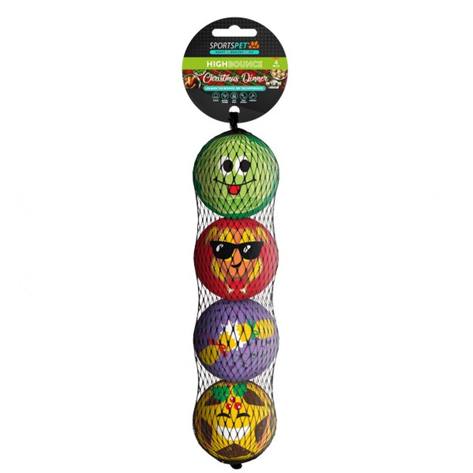 Fetch some festive fun with the SPORTSPET High Bounce Christmas Dinner Ball Set! This limited-edition 4-pack features a joyful selection of holiday favourites — Turkey, Sprout, Mince Pie and Christmas Cracker — all packed into our signature high bounce dog ball design. Perfect for energetic dogs who love to chase, chew and play, these vibrant rubber dog balls bring the spirit of Christmas straight to the park, garden, or living room.
