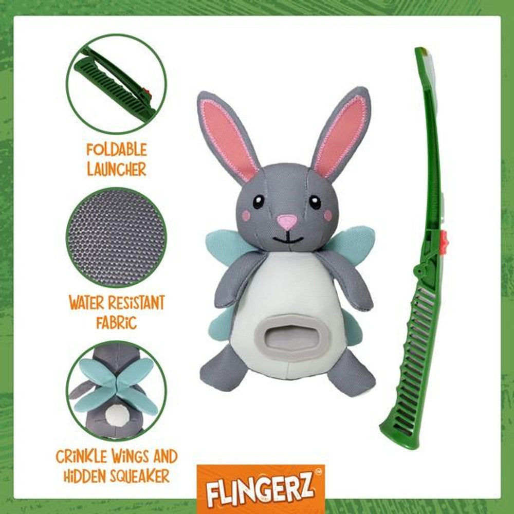 Introducing the Flingerz Rabbit Toy, a delightful playmate for your furry friend! Crafted from durable, wipeable canvas materials, this toy is designed to withstand rough play while being easy to clean. The rabbit features fun crinkle wings that add an extra layer of excitement during playtime. For convenient storage, a cleverly designed hole in its tummy allows you to insert the foldable launching stick, keeping everything tidy and ready for the next play session. Perfect for active dogs, the Flingerz Rabbit Toy ensures endless fun and easy maintenance, making it a must-have addition to your pet’s toy collection.