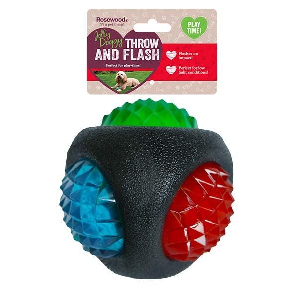 Multi-coloured light up ball for dogs! Lights up and flashes on impact! Great for play in low light conditions. Perfect for play-time!