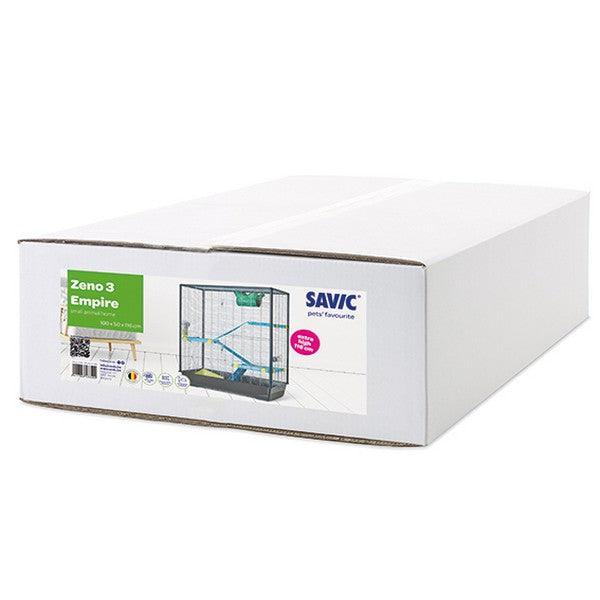 Standing 116 cm tall, the Zeno 3 Knock Down Empire has all the makings of a tower block for rats. The 3 raised platforms, 3 ladders and a cosy hammock give your small animal plenty of extra space for climbing, clambering and sleeping. The Zeno 3 Empire also has a toilet on the lower level. The feeding bowl and the drinking bottle are simply affixed to the sides.The Zeno Empire cage is easy to assemble, without tools, and just as easily disassembled, allow-ing it to be stored away saving space when not in use.The 2 large front doors ensure easy access to the cage for daily cleaning, feeding and tending to your pet. The doors are fitted with an intelligent lock to prevent the pets from escaping.The very narrow bar spacing (9.5 mm) not only makes the cage suitable for rats but equally for hamsters.