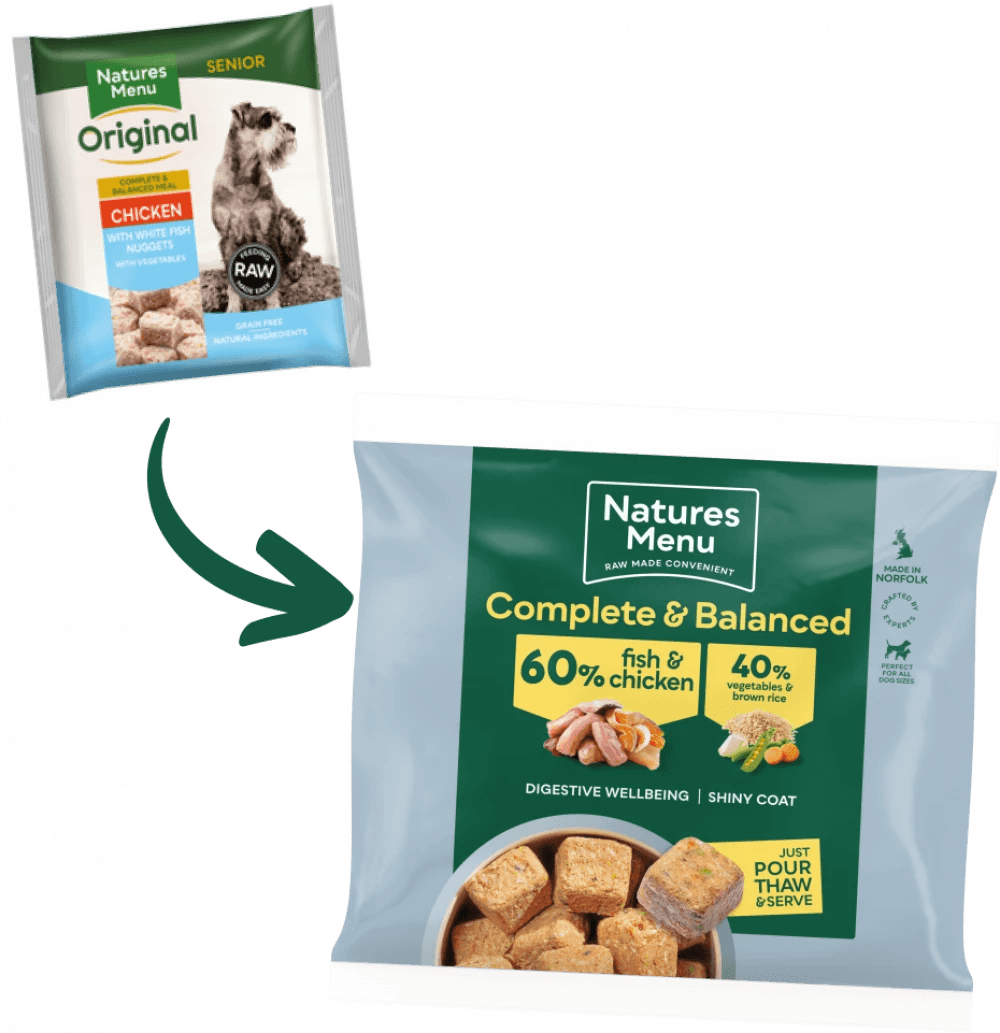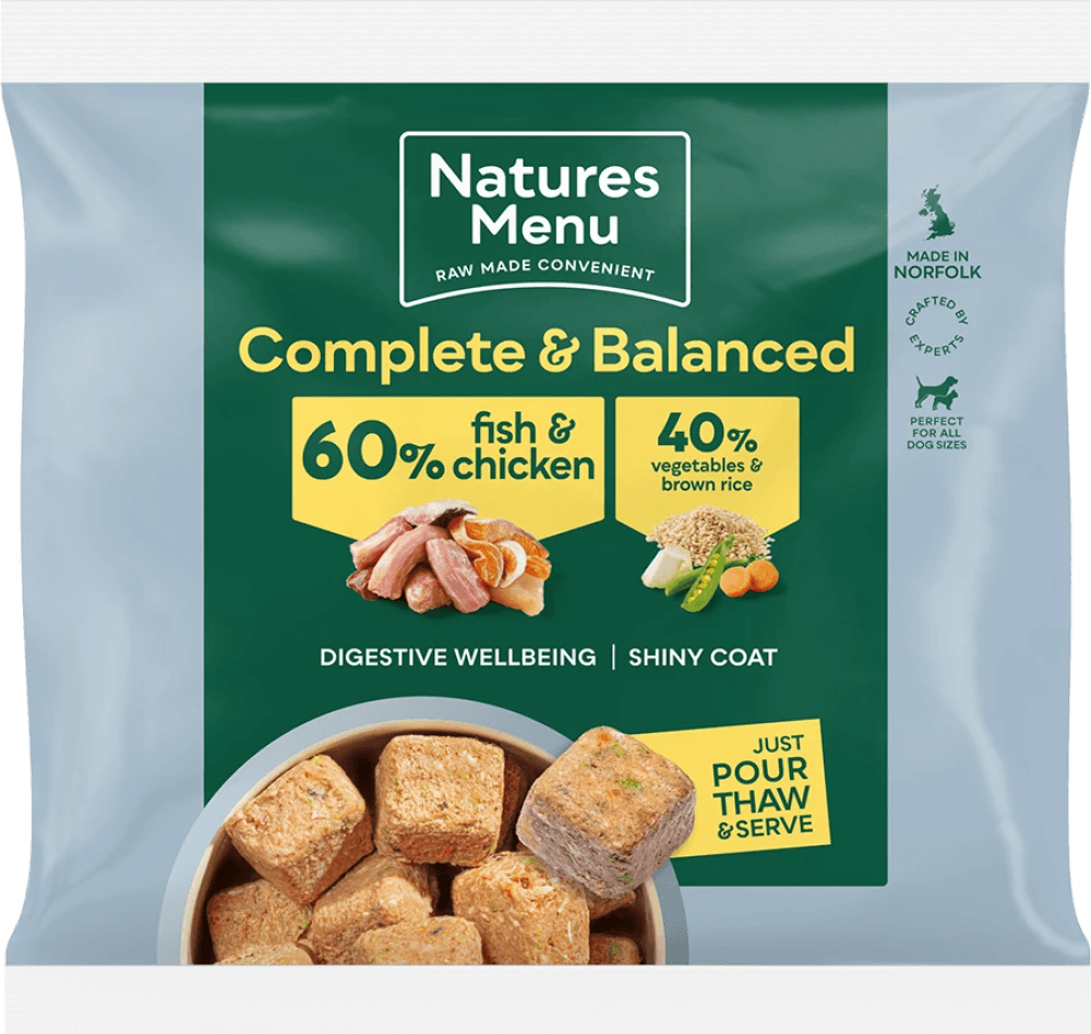 We use raw natural ingredients that you can see, understand and trust, and our in-house experts carefully craft each recipe. Every Natures Menu 60/40 recipe is made to FEDIAF standards and will provide your dog with a complete and balanced meal they’ll love and benefit from. Our complete and balanced recipe combines our special mix of vegetables and brown rice, which can provide a readily available source of fuel for sporting or strenuous activity.