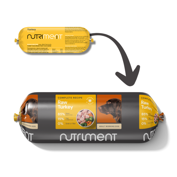 Nutriment's raw turkey for dogs formula is part of the Core range of innovative, premium raw dog foods. Specifically formulated by our in-house canine nutritionists with canine health and happiness in mind, our turkey recipe includes carefully selected ingredients which are biologically appropriate, natural and easy for dogs to digest. Turkey contains high-quality protein and is low in fat, and therefore is an ideal protein source for dog food. Our turkey formula is free from grains, fillers and artificial ingredients which are common in commercially available dog foods and can cause digestive discomfort in dogs.