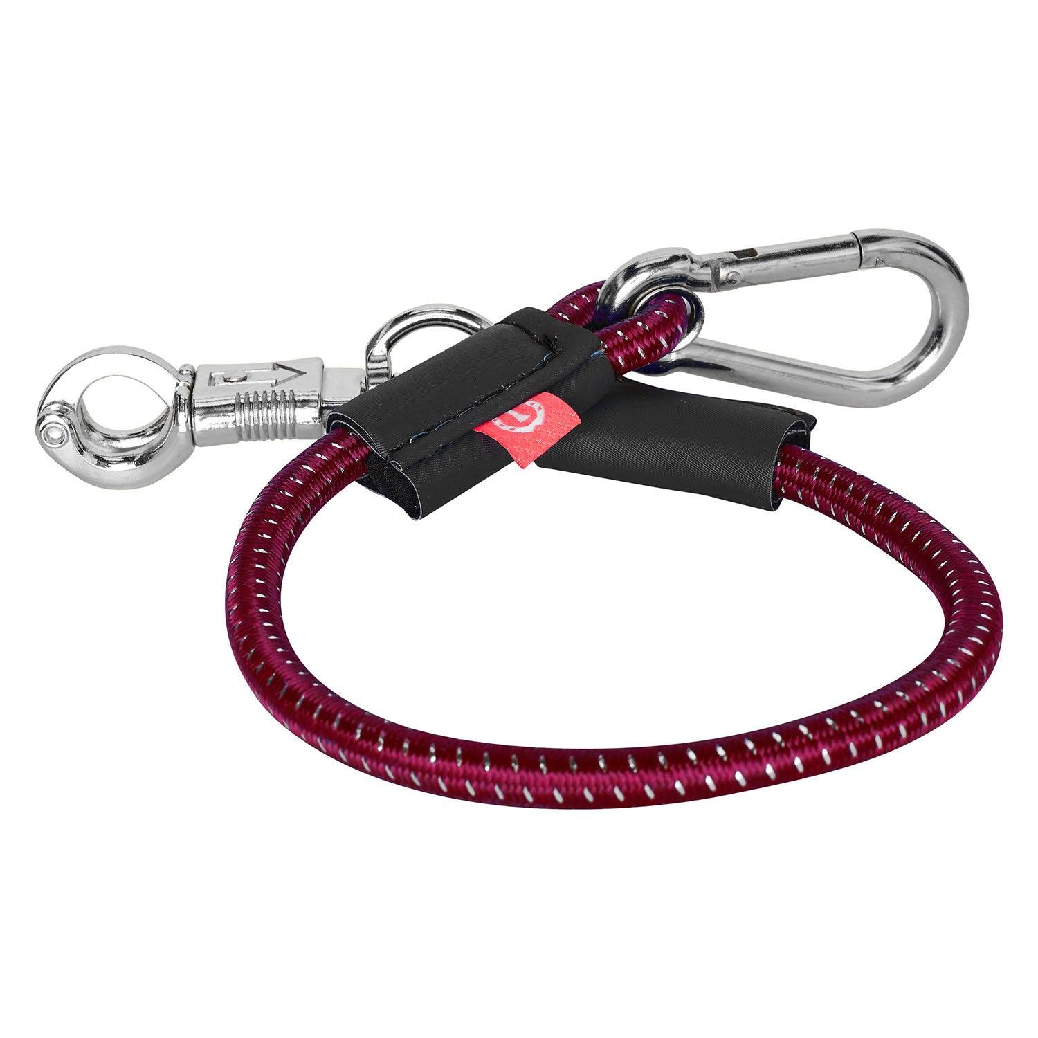 Elastic trailertie with panic hook and carabiner.