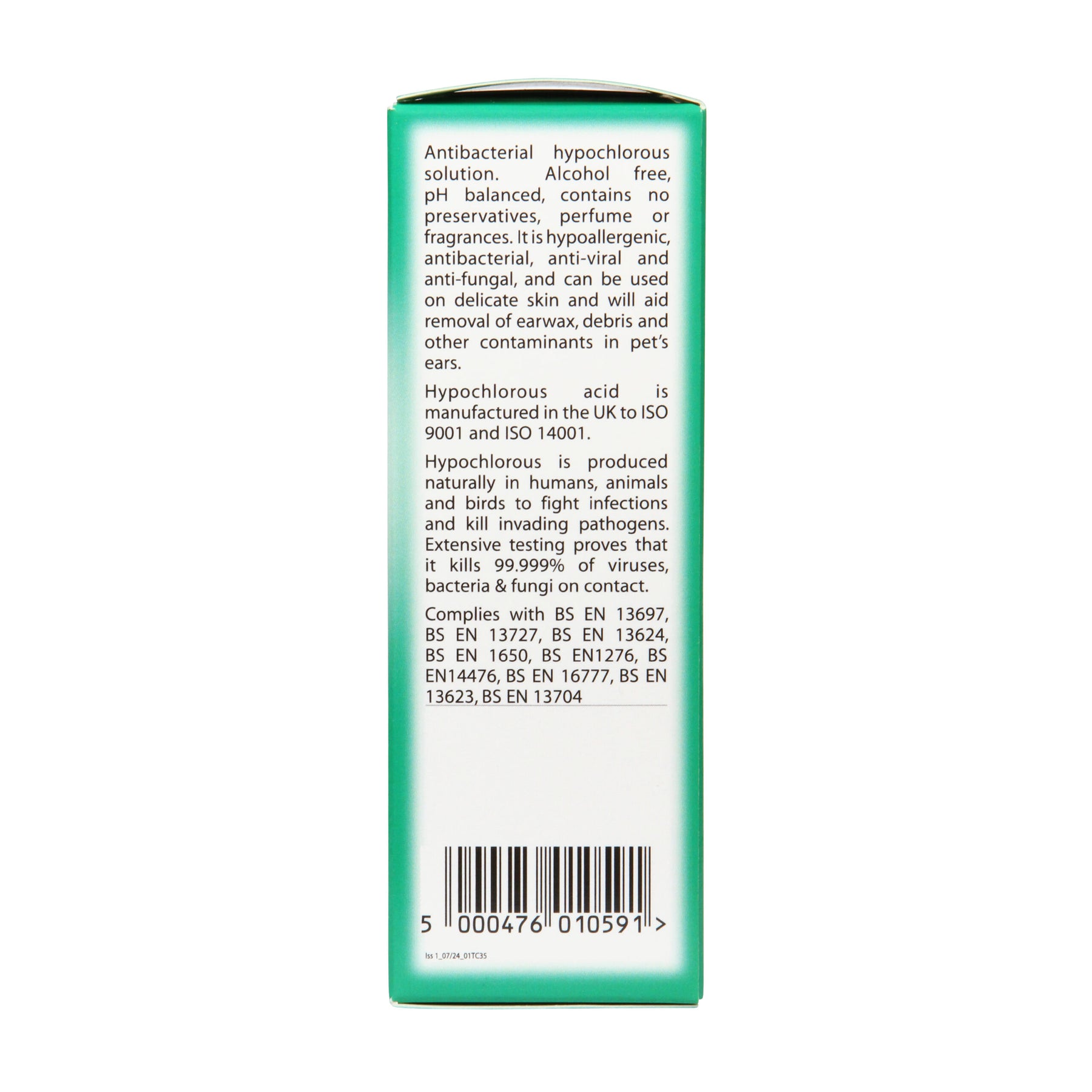 What’s it for? Gentle yet effective antiseptic ear drops for dogs, cats, and small pets Alcohol-free, pH-balanced hypochlorous solution kills 99.999% of germs Antibacterial, antifungal, and antiviral action Hypoallergenic and preservative-free, it contains no perfumes or fragrances, making it ideal for delicate skin Aids in removing earwax, debris, and other contaminants, supporting good ear health Vegan friendly