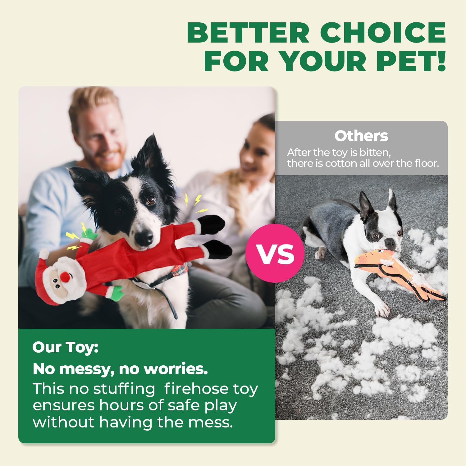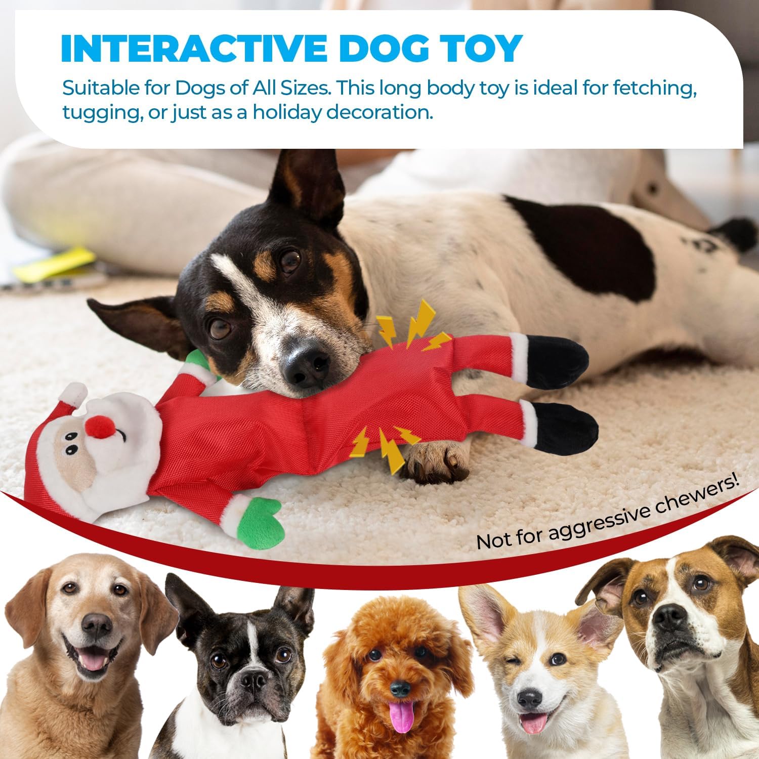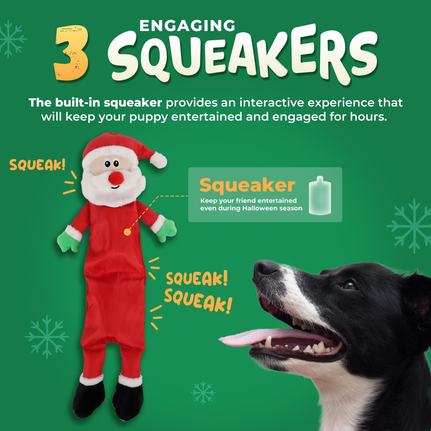 Bring festive cheer to playtime with this jolly companion! Packed with crinkly and squeaky elements, it'll have your pup bouncing with excitement. The stretched-out frame is made for rough-and-tumble fun, perfect for tugging, flinging, and thrashing about. A Christmas must-have that delivers endless entertainment and seasonal spirit.