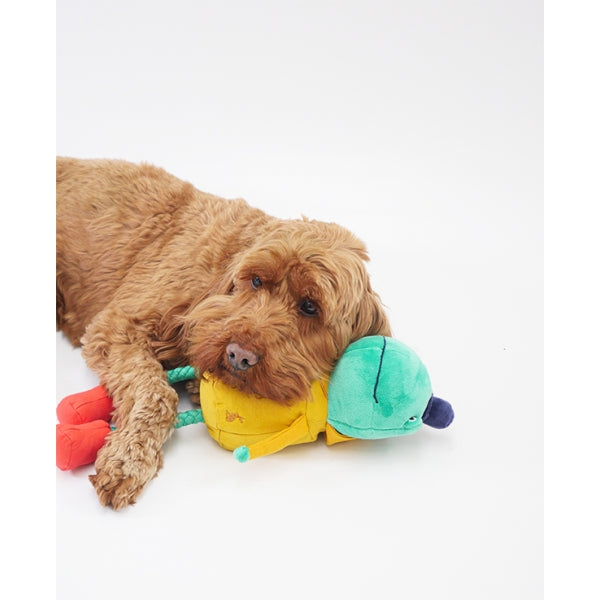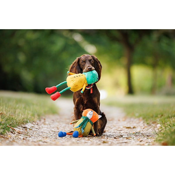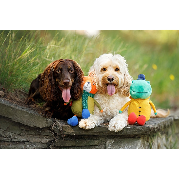 This delightful frog will provide your four-legged friend with hours of fun. Created in a combination of fabrics and textures with embroidery details, it features a sturdy rope legs and a hidden squeaker to keep excitement levels high. All seams are double stitched for extra durability.