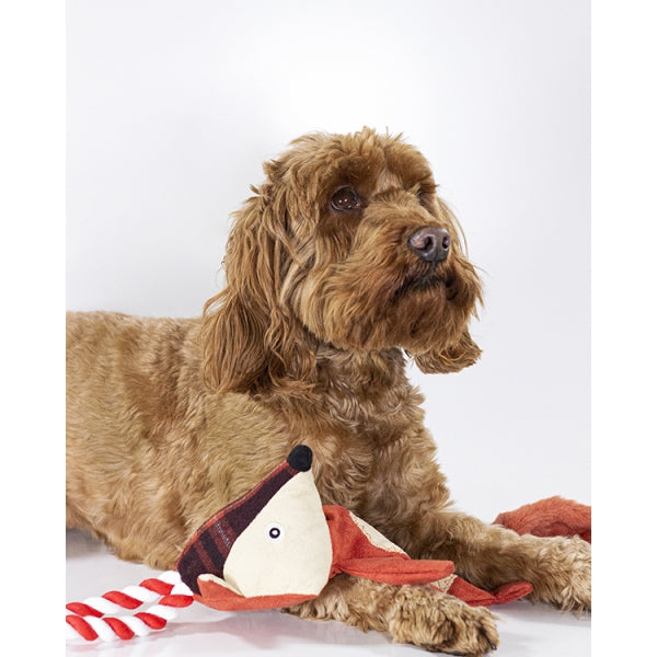 This delightful tugger will provide your four-legged friend with hours of fox-shaped fun. Created in a combination of fabrics and textures, it features a sturdy rope tail and handle and a hidden squeaker to keep excitement levels high.